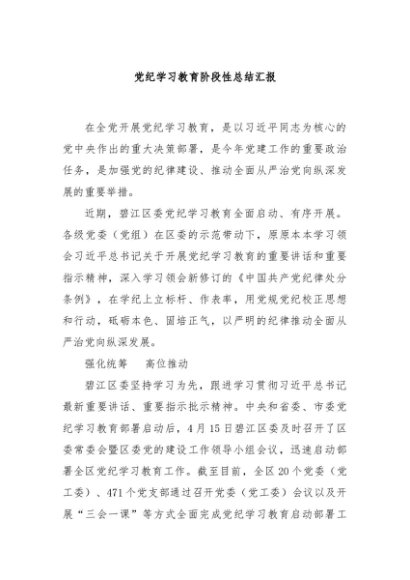 / 【七哥公文】2024年:党纪学习教育阶段性总结汇报+更多免费公文+VX:QiGeGongWen2024