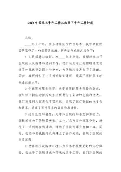 / 【七哥公文】2024年:2024年医院上半年工作总结及下半年工作计划+更多免费公文+VX:QiGeGongWen2024