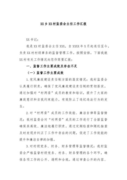 / 【七哥公文】2024年:XX乡XX村监委会主任工作汇报+更多免费公文+VX:QiGeGongWen2024