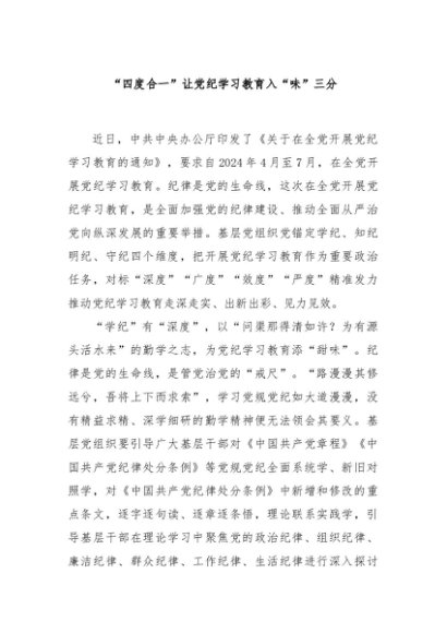 / 【七哥公文】2024年:“四度合一”让党纪学习教育入“味”三分+更多免费公文+VX:QiGeGongWen2024