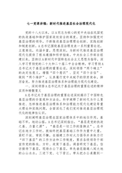 / 【七哥公文】2024年:七一党课讲稿:新时代推进基层社会治理现代化+更多免费公文+VX:QiGeGongWen2024