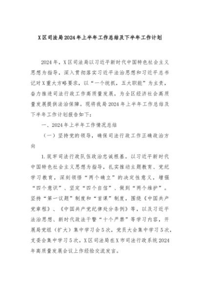 【七哥公文】2024年:X区司法局2024年上半年工作总结及下半年工作计划+更多免费公文+VX:QiGeGongWen2024