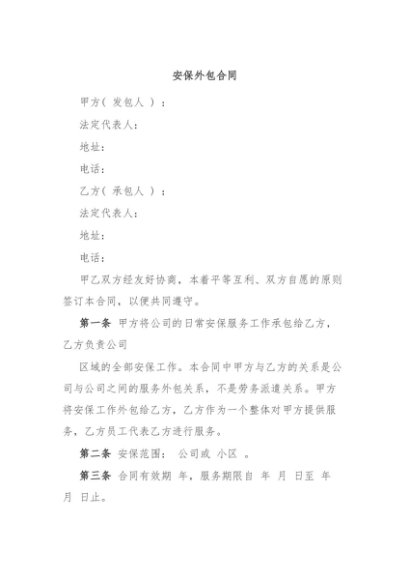 【七哥公文】2024年:安保外包合同+更多免费公文+VX:QiGeGongWen2024