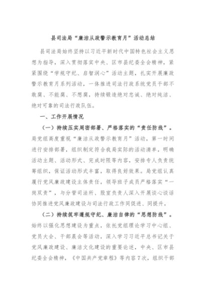 / 【七哥公文】2024年:县司法局“廉洁从政警示教育月”活动总结+更多免费公文+VX:QiGeGongWen2024