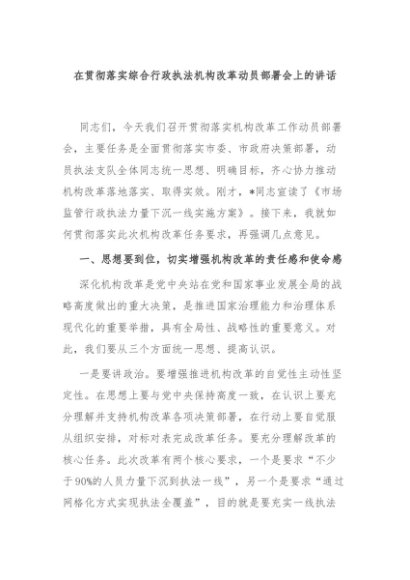 / 【七哥公文】2024年:在贯彻落实综合行政执法机构改革动员部署会上的讲话+更多免费公文+VX:QiGeGongWen2024