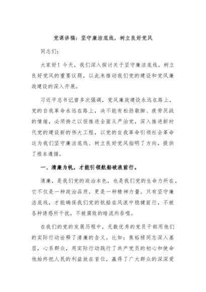 / 【七哥公文】2024年:党课讲稿:坚守廉洁底线,树立良好党风+更多免费公文+VX:QiGeGongWen2024