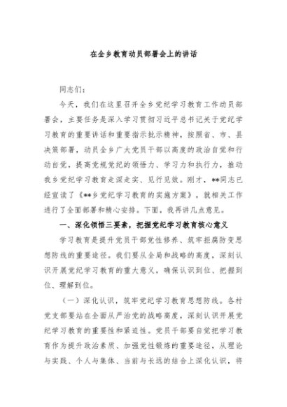 / 【七哥公文】2024年:在全乡教育动员部署会上的讲话+更多免费公文+VX:QiGeGongWen2024