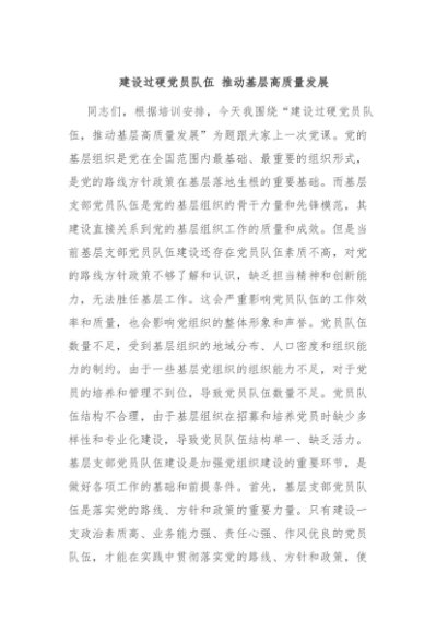 / 【七哥公文】2024年:建设过硬党员队伍 推动基层高质量发展+更多免费公文+VX:QiGeGongWen2024