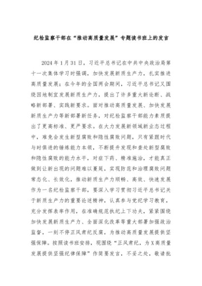 【七哥公文】2024年:纪检监察干部在“推动高质量发展”专题读书班上的发言+更多免费公文+VX:QiGeGongWen2024