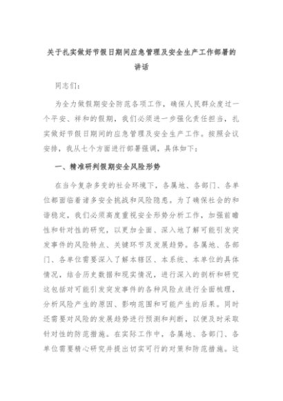【七哥公文】2024年:关于扎实做好节假日期间应急管理及安全生产工作部署的讲话+更多免费公文+VX:QiGeGongWen2024