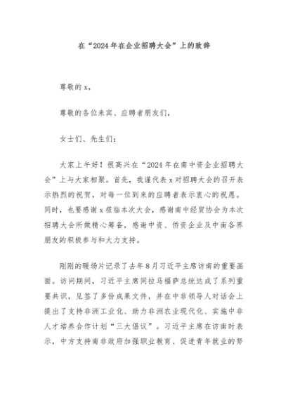 / 【七哥公文】2024年:在“2024年在企业招聘大会”上的致辞+更多免费公文+VX:QiGeGongWen2024