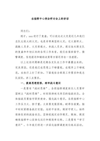 / 【七哥公文】2024年:在指挥中心例会研讨会上的讲话+更多免费公文+VX:QiGeGongWen2024