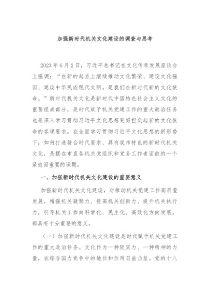 / 【七哥公文】2024年:加强新时代机关文化建设的调查与思考+更多免费公文+VX:QiGeGongWen2024