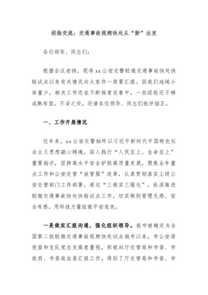/ 【七哥公文】2024年:经验交流:交通事故视频快处从“新”出发+更多免费公文+VX:QiGeGongWen2024