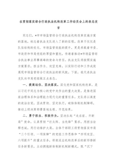 【七哥公文】2024年:在贯彻落实综合行政执法机构改革工作动员会上的表态发言+更多免费公文+VX:QiGeGongWen2024
