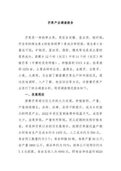 【七哥公文】2024年:芒果产业调查报告+更多免费公文+VX:QiGeGongWen2024