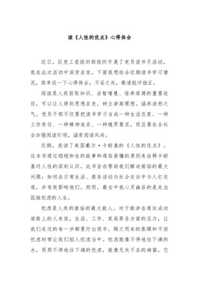 【七哥公文】2024年:读《人性的优点》心得体会+更多免费公文+VX:QiGeGongWen2024