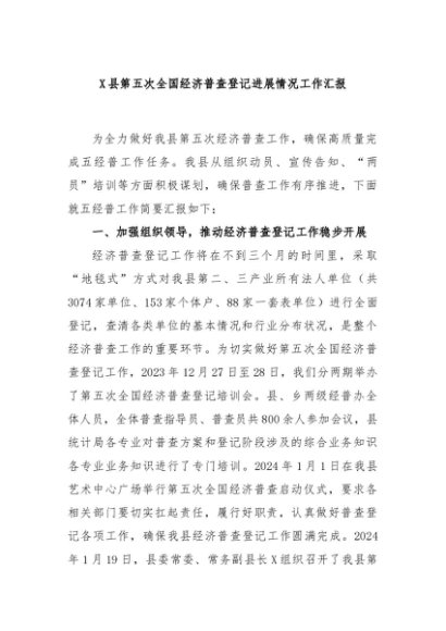 / 【七哥公文】2024年:X县第五次全国经济普查登记进展情况工作汇报+更多免费公文+VX:QiGeGongWen2024