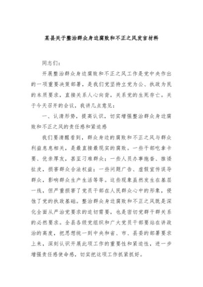 / 【七哥公文】2024年:某县关于整治群众身边腐败和不正之风发言材料+更多免费公文+VX:QiGeGongWen2024