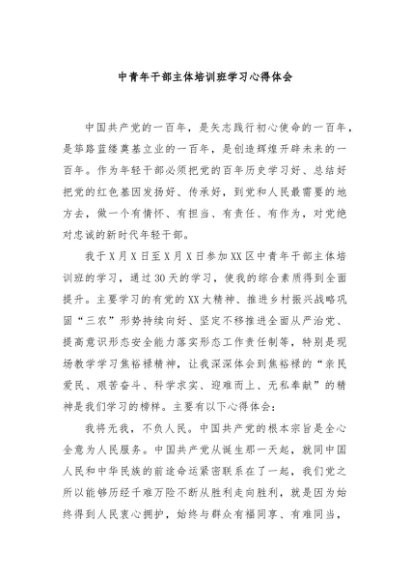 【七哥公文】2024年:中青年干部主体培训班学习心得体会+更多免费公文+VX:QiGeGongWen2024