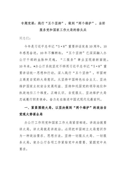 【七哥公文】2024年:专题党课:践行“五个坚持”,做到“两个维护”,当好服务党和国家工作大局的排头兵+更多免费公文+VX:QiGeGongWen2024