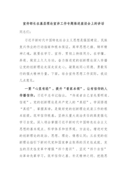 / 【七哥公文】2024年:宣传部长在基层理论宣讲工作专题推进座谈会上的讲话+更多免费公文+VX:QiGeGongWen2024