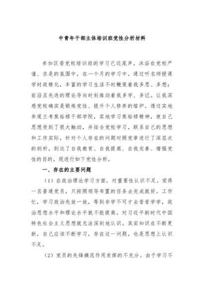 / 【七哥公文】2024年:中青年干部主体培训班党性分析材料+更多免费公文+VX:QiGeGongWen2024