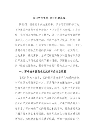 【七哥公文】2024年:强化党性修养 坚守纪律底线+更多免费公文+VX:QiGeGongWen2024