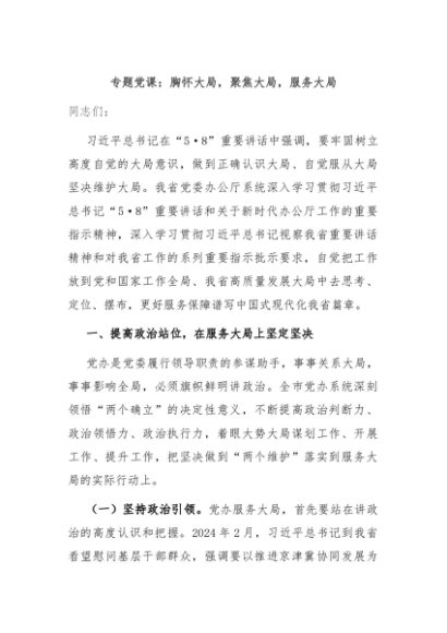 / 【七哥公文】2024年:专题党课:胸怀大局,聚焦大局,服务大局+更多免费公文+VX:QiGeGongWen2024