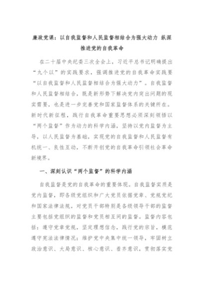 【七哥公文】2024年:廉政党课:以自我监督和人民监督相结合为强大动力 纵深推进党的自我革命+更多免费公文+VX:QiGeGongWen2024