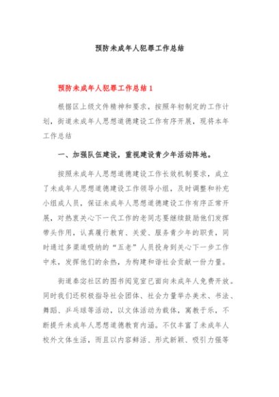 / 【七哥公文】2024年:预防未成年人犯罪工作总结+更多免费公文+VX:QiGeGongWen2024