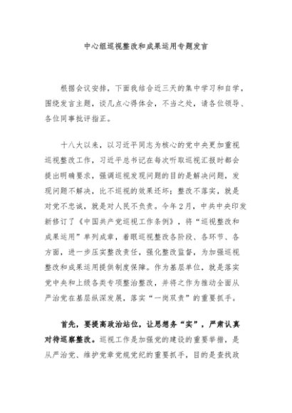 / 【七哥公文】2024年:中心组巡视整改和成果运用专题发言+更多免费公文+VX:QiGeGongWen2024