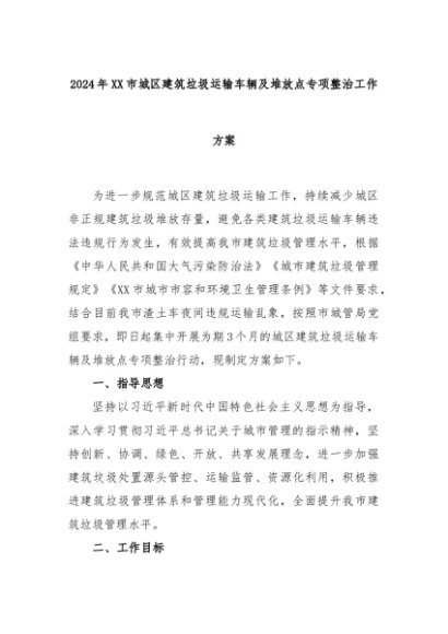 【七哥公文】2024年:2024年XX市城区建筑垃圾运输车辆及堆放点专项整治工作方案+更多免费公文+VX:QiGeGongWen2024