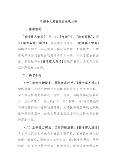 / 【七哥公文】2024年:干部个人考察现实表现材料+更多免费公文+VX:QiGeGongWen2024