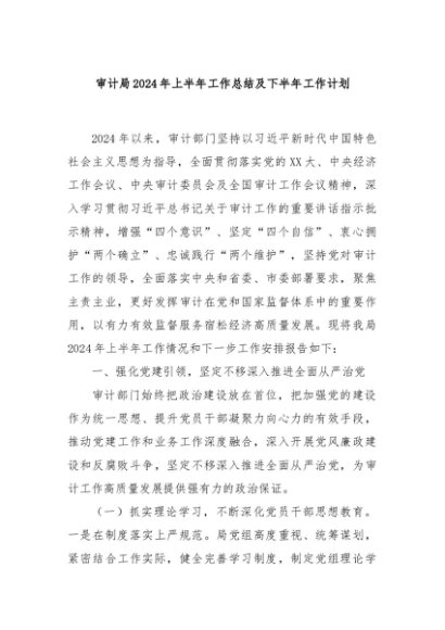/ 【七哥公文】2024年:审计局2024年上半年工作总结及下半年工作计划+更多免费公文+VX:QiGeGongWen2024