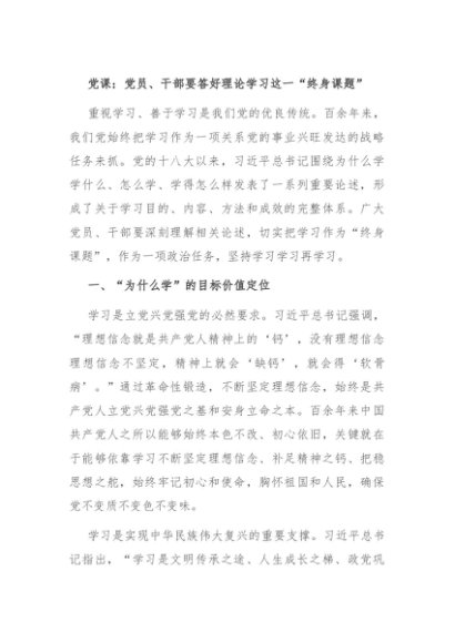 / 【七哥公文】2024年:党课:党员、干部要答好理论学习这一“终身课题”+更多免费公文+VX:QiGeGongWen2024