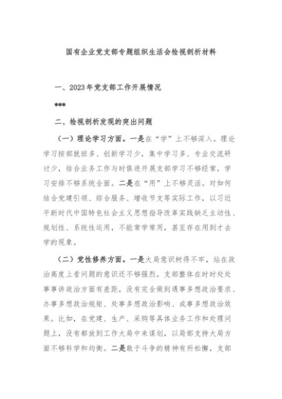 / 【七哥公文】2024年:国有企业党支部专题组织生活会检视剖析材料+更多免费公文+VX:QiGeGongWen2024