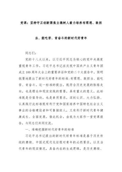 【七哥公文】2024年:党课:坚持守正创新聚焦立德树人着力培养有理想、敢担当、能吃苦、肯奋斗的新时代好青年+更多免费公文+VX:QiGeGongWen2024