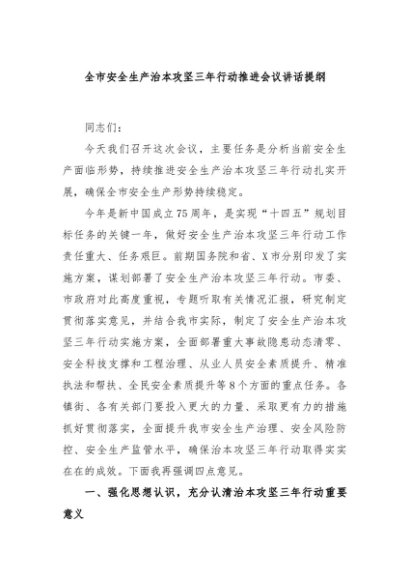 / 【七哥公文】2024年:全市安全生产治本攻坚三年行动推进会议讲话提纲+更多免费公文+VX:QiGeGongWen2024