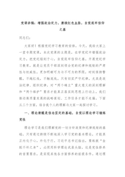 【七哥公文】2024年:党课讲稿:增强政治定力,赓续红色血脉,自觉筑牢信仰之基+更多免费公文+VX:QiGeGongWen2024