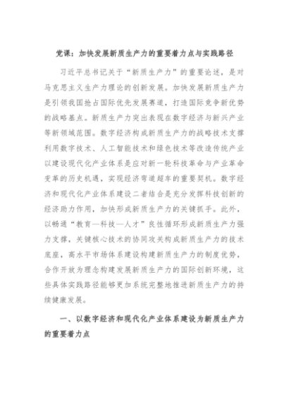 / 【七哥公文】2024年:党课:加快发展新质生产力的重要着力点与实践路径+更多免费公文+VX:QiGeGongWen2024