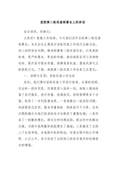 / 【七哥公文】2024年:医院第二轮巡查部署会上的讲话+更多免费公文+VX:QiGeGongWen2024
