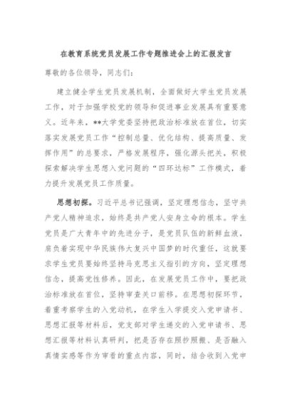 / 【七哥公文】2024年:在教育系统党员发展工作专题推进会上的汇报发言+更多免费公文+VX:QiGeGongWen2024