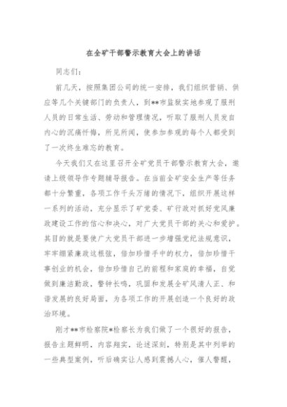 / 【七哥公文】2024年:在全矿干部警示教育大会上的讲话+更多免费公文+VX:QiGeGongWen2024
