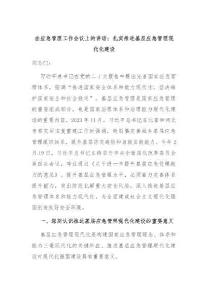 【七哥公文】2024年:在应急管理工作会议上的讲话:扎实推进基层应急管理现代化建设+更多免费公文+VX:QiGeGongWen2024