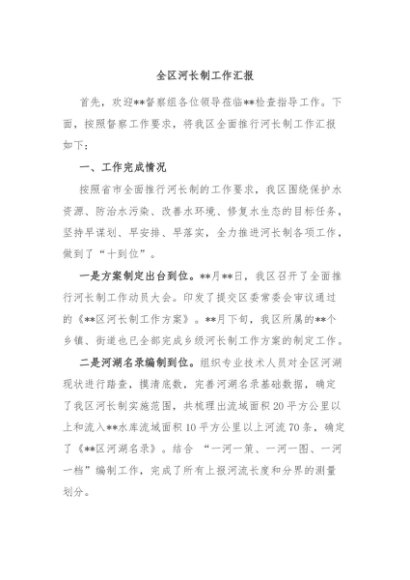 / 【七哥公文】2024年:全区河长制工作汇报+更多免费公文+VX:QiGeGongWen2024