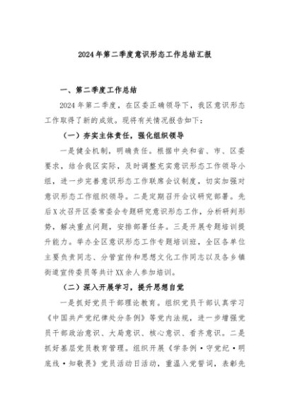 / 【七哥公文】2024年:2024年第二季度意识形态工作总结汇报+更多免费公文+VX:QiGeGongWen2024