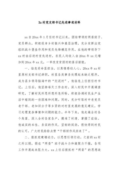/ 【七哥公文】2024年:Xx村党支部书记先进事迹材料+更多免费公文+VX:QiGeGongWen2024
