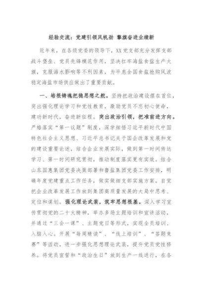 / 【七哥公文】2024年:经验交流:党建引领风帆劲 擎旗奋进业绩新+更多免费公文+VX:QiGeGongWen2024