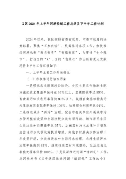 【七哥公文】2024年:X区2024年上半年河湖长制工作总结及下半年工作计划+更多免费公文+VX:QiGeGongWen2024